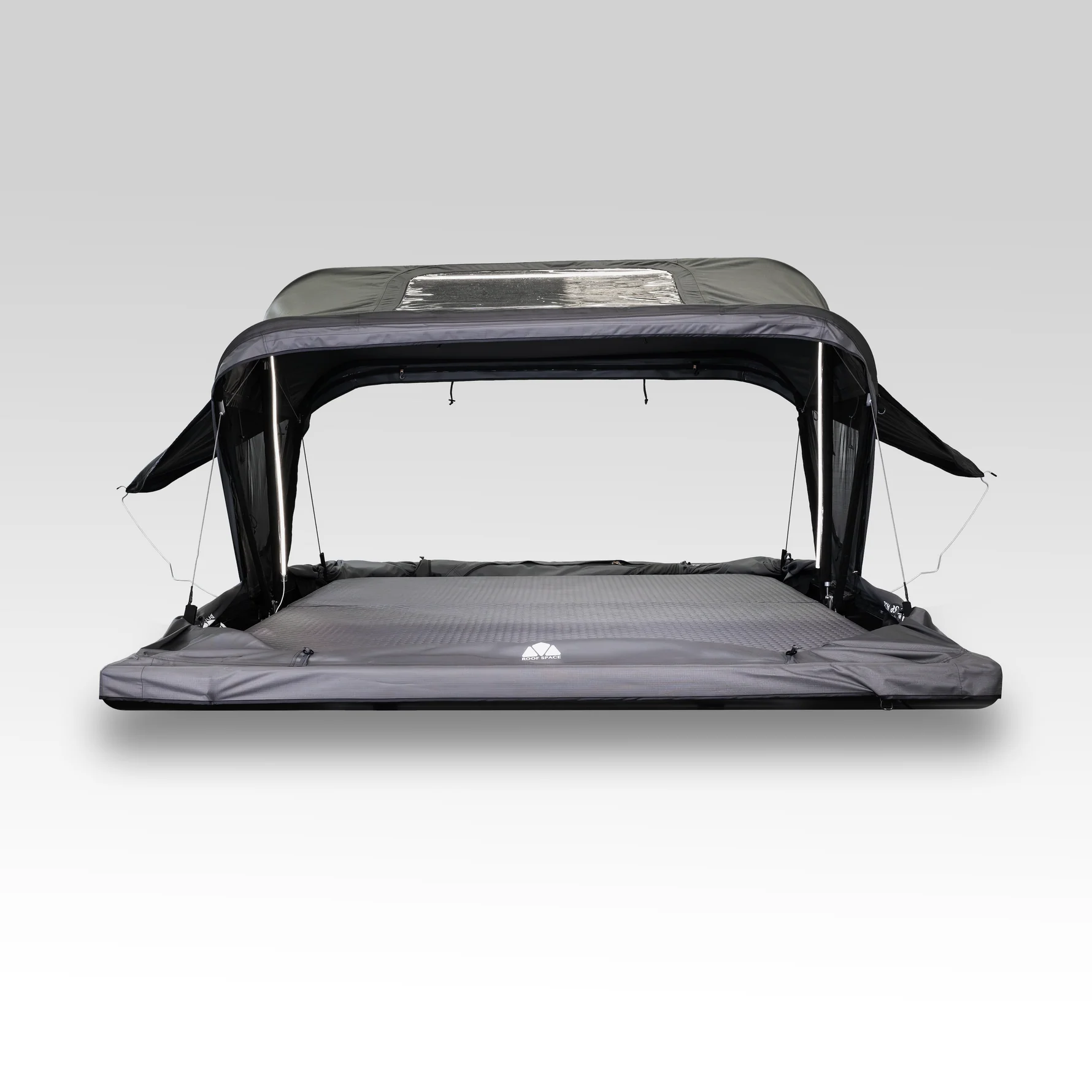 - ▶ Weltneuheit: Schneller Aufbau eines Hartschalenzeltes kombiniert mit der doppelten Liegefläche eines Faltdachzeltes. Dieses Dachzelt bietet Platz für 4 Personen. Ein wahres Dachzelt für 4 Personen ist also garantiert und eignet sich hervorragend als Dachzelt für vier.
